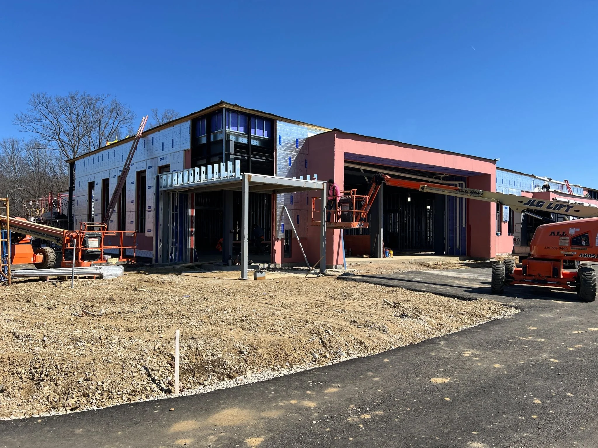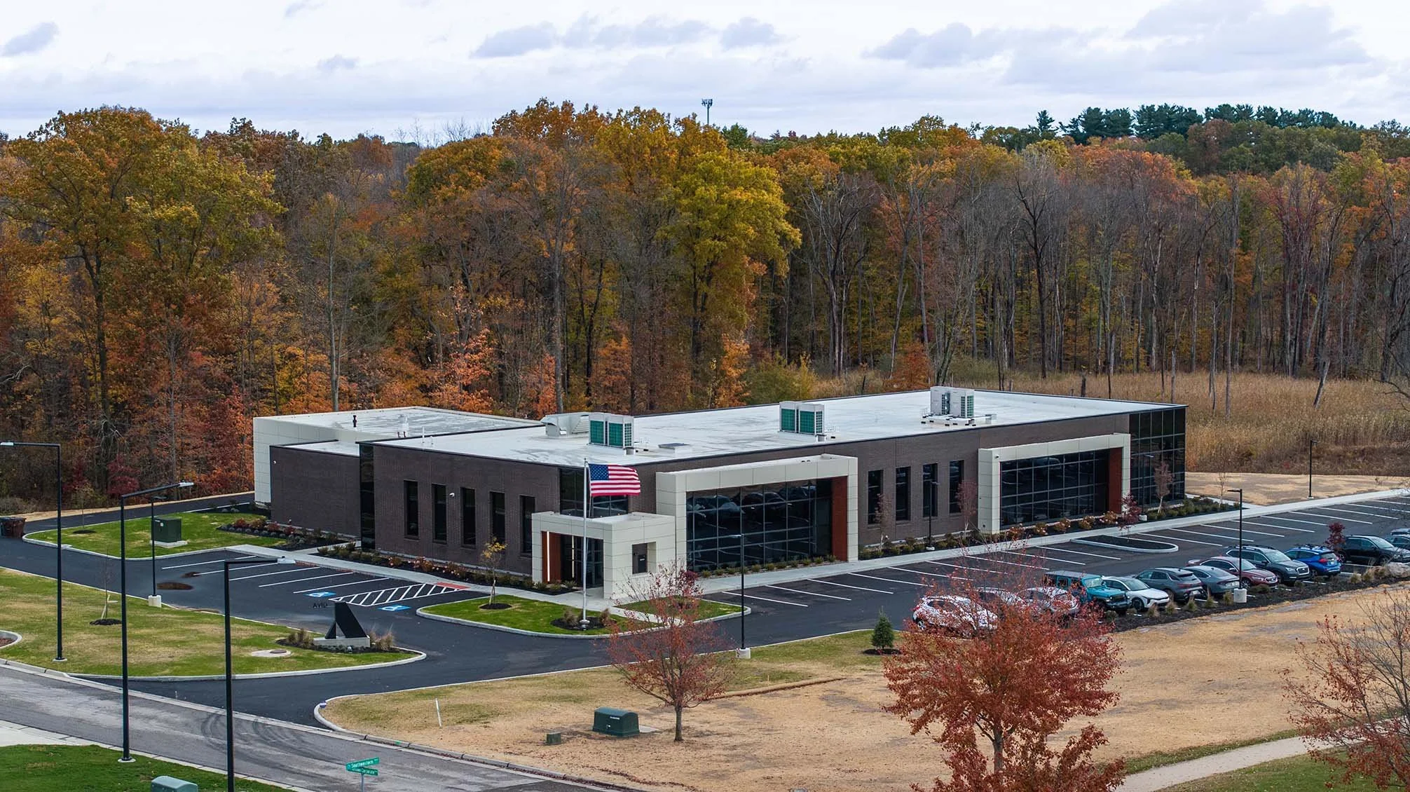 DESCRIPTION: The Avid Architects Headquarters is a one-story office building designed to support both professional collaboration and employee wellness. The facility features a large breakroom, covered outdoor patio, golf simulator, fitness room, and an enclosed parking garage. Architecturally distinctive elements include brick veneer façades, expansive storefront and curtainwall glazing, and low canopy roof “eyebrow” elements that accent the exterior elevations.