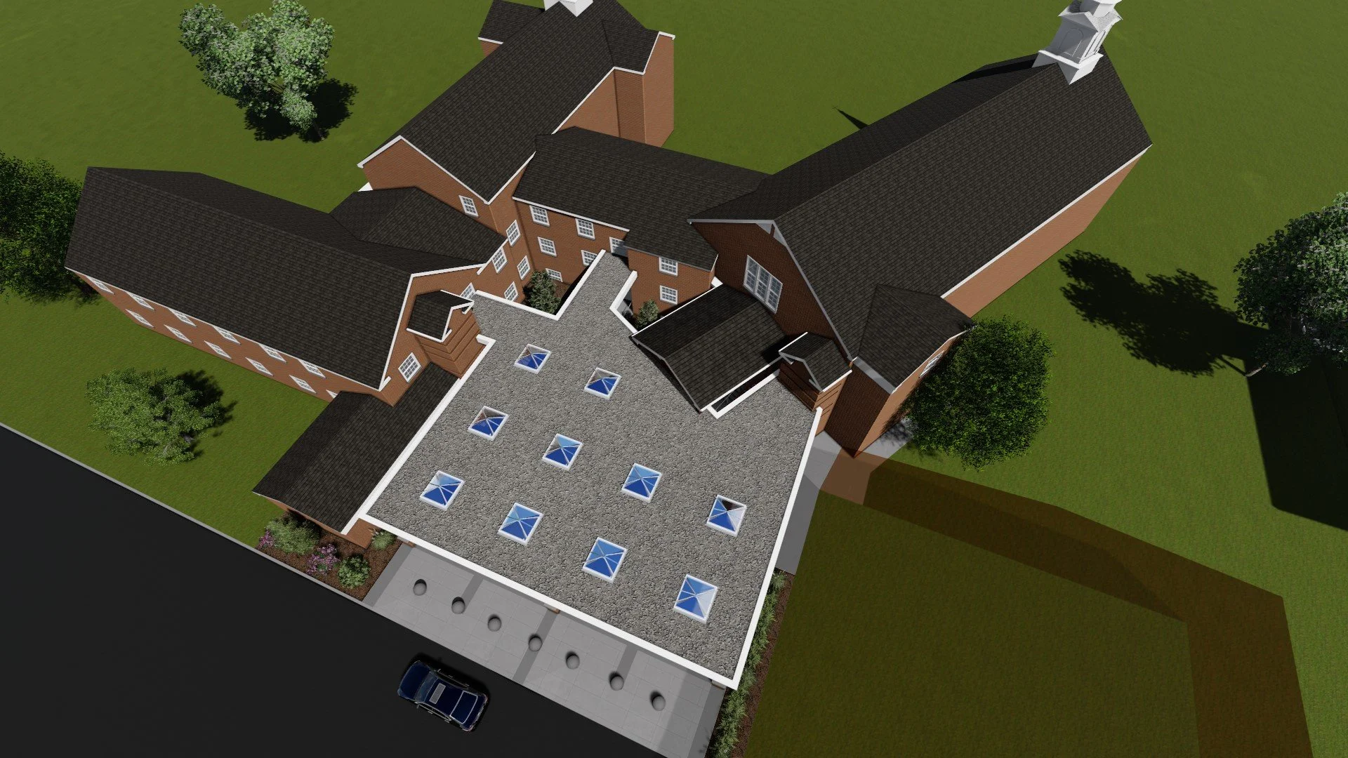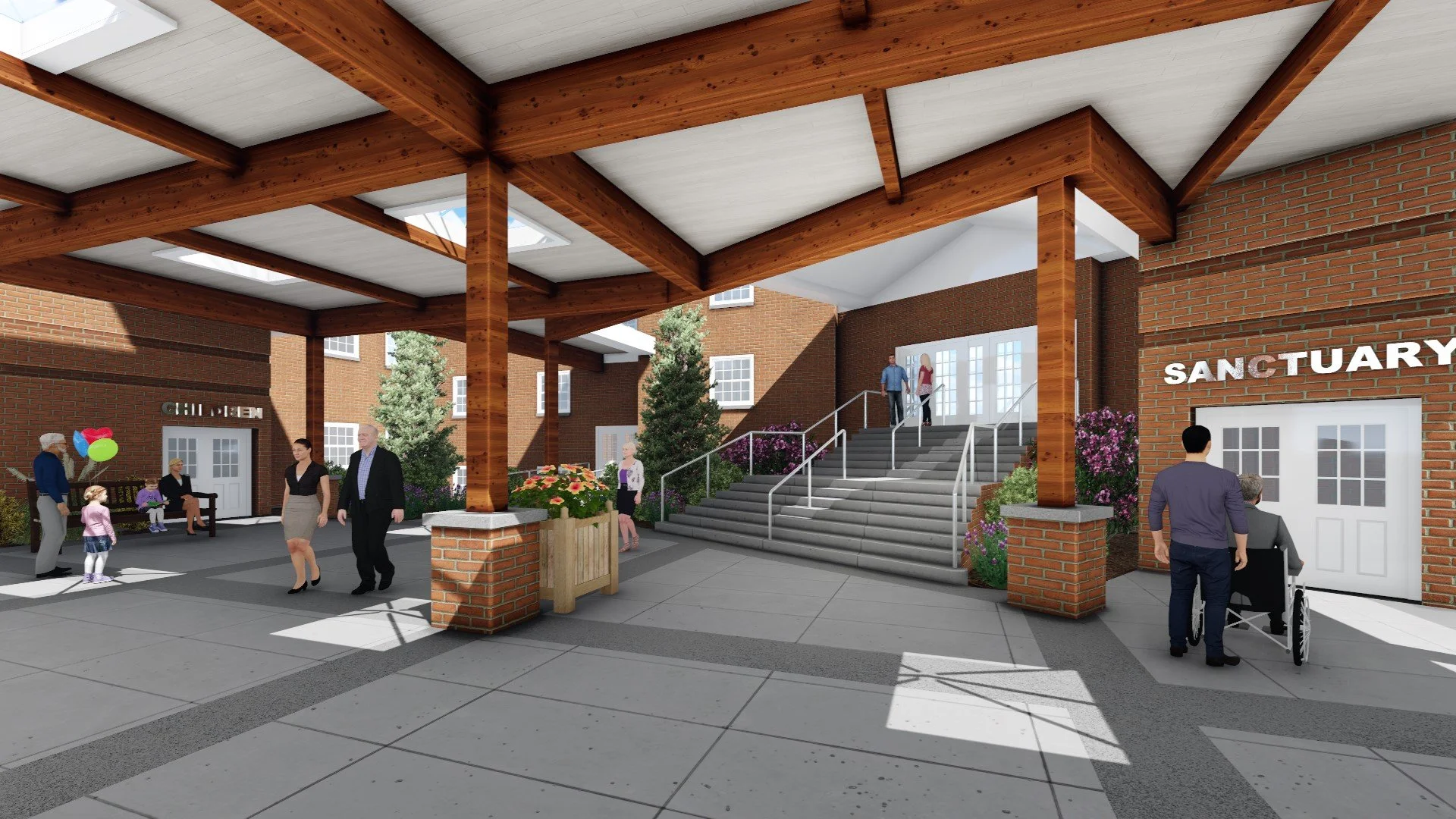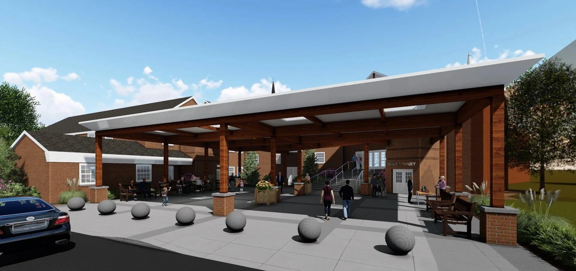 DESCRIPTION: Peters Creek Baptist Church Pavilion is a one-story exterior canopy addition that includes two new two-story lobby expansions and elevators serving the existing facility. The project features cantilevered structural steel framing along the full perimeter of the pavilion, as well as a prominent porte-cochère at the main entrance, creating both a functional and architecturally expressive addition.