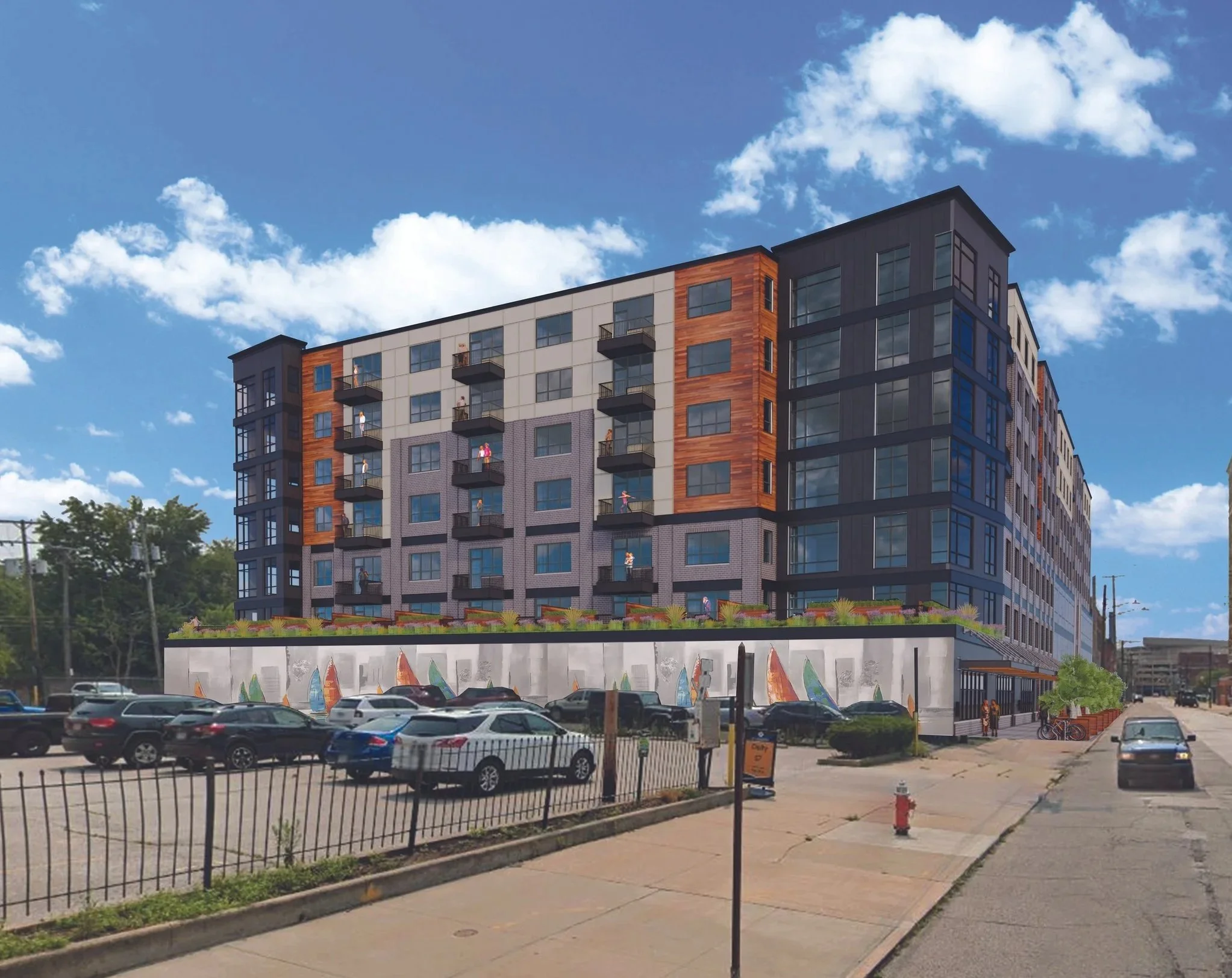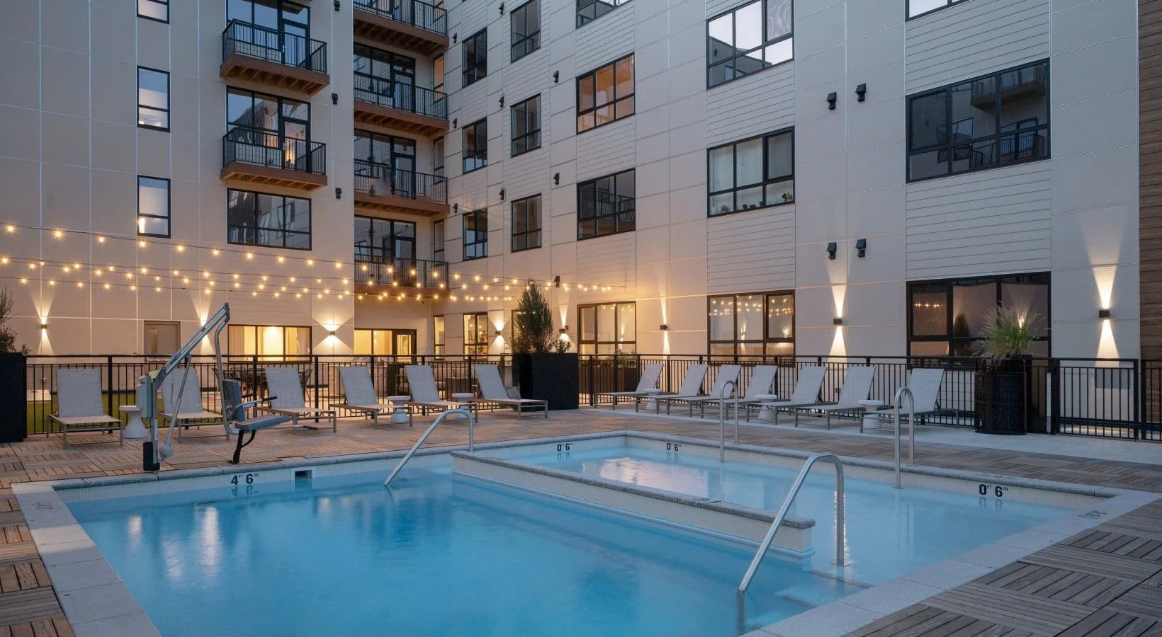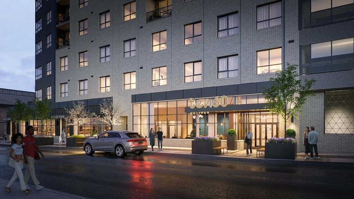 DESCRIPTION: Ten60 Bolivar is a seven-story, 178-unit mixed-use apartment building featuring amenity spaces, ground-floor retail, and lower-level parking. The project integrates adaptive reuse through the restoration of an existing three-story parking garage, which serves as the structural podium for four new stories of residential construction above. The podium levels include outdoor amenity spaces, a rooftop pool and dog park.